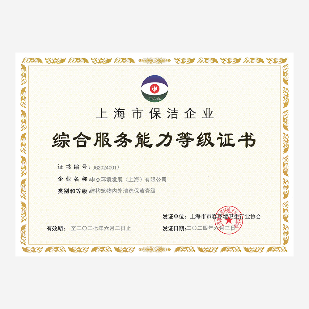 建構(gòu)筑物內(nèi)外清洗保潔一級能力證書