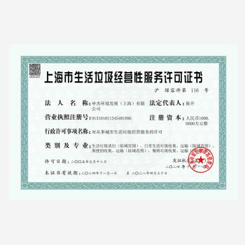 上海市生活垃圾經(jīng)營性服務(wù)許可證書